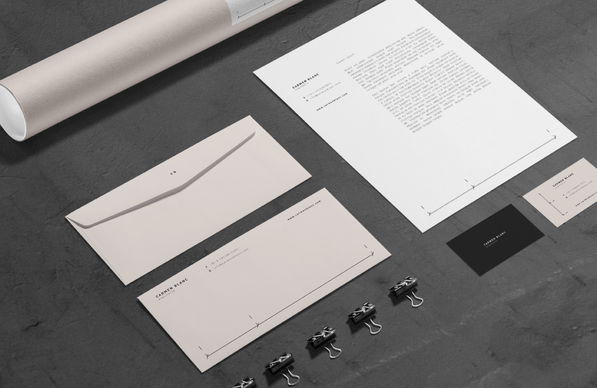 We where inspired by architecture plans to build her branding proposal. She love it because of its simplicity and minimalism.